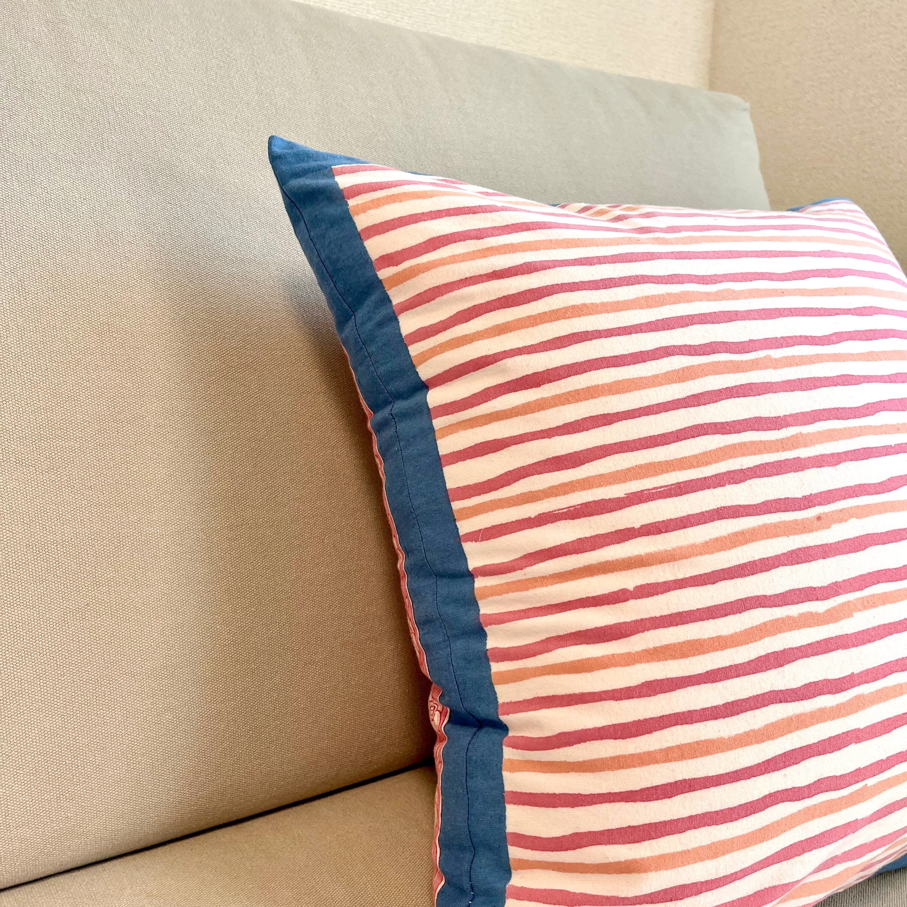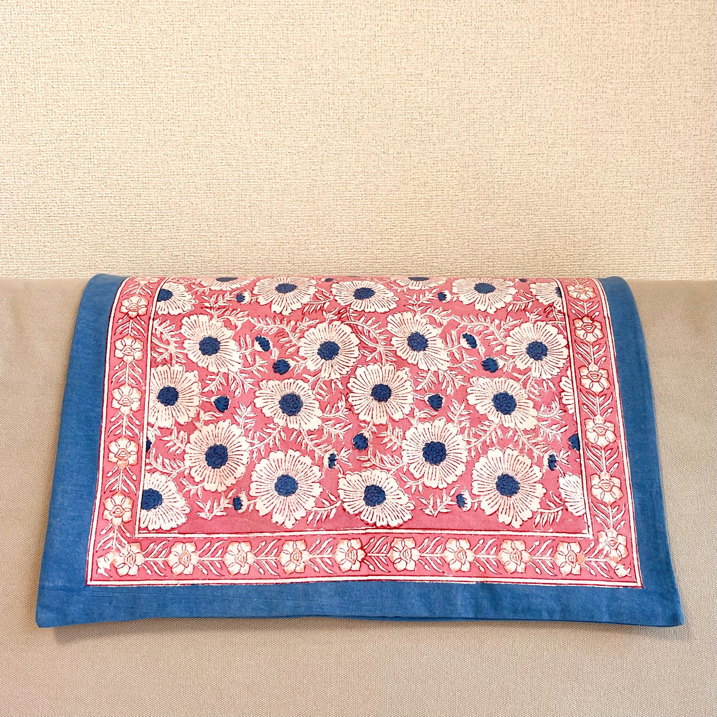 インドの伝統技術「ハンドブロックプリント」の布で作ったクッションです。