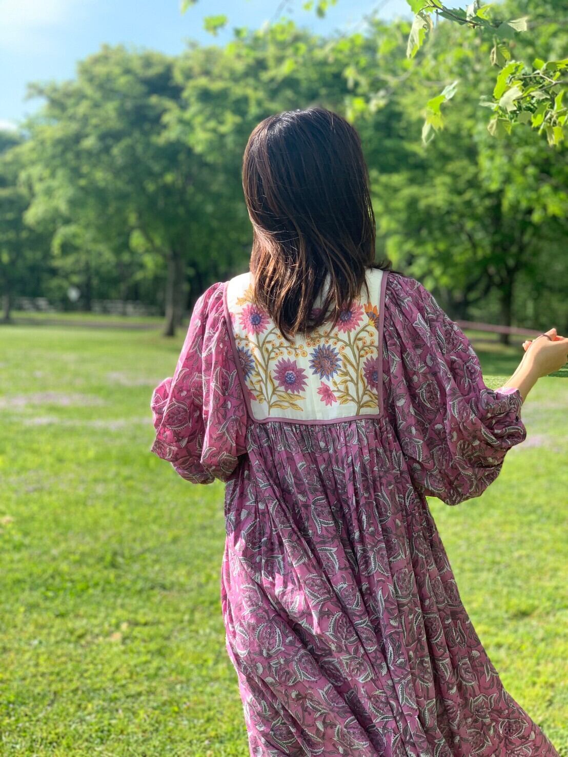 全体が、パープルトーンのピンクカラーになっているため、甘くなり過ぎず大人可愛くお召しいただけます。