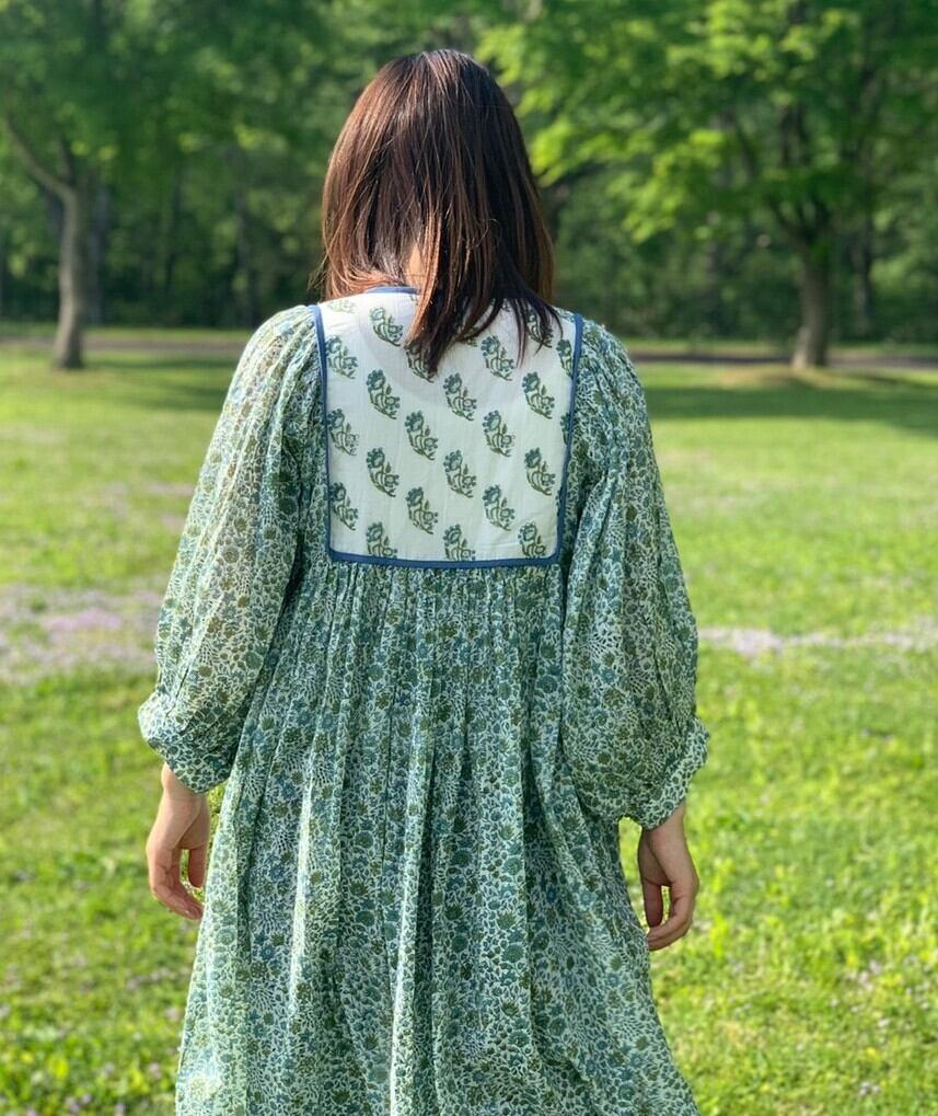 グリーンのチャトリ(小花柄)が爽やかなワンピース。