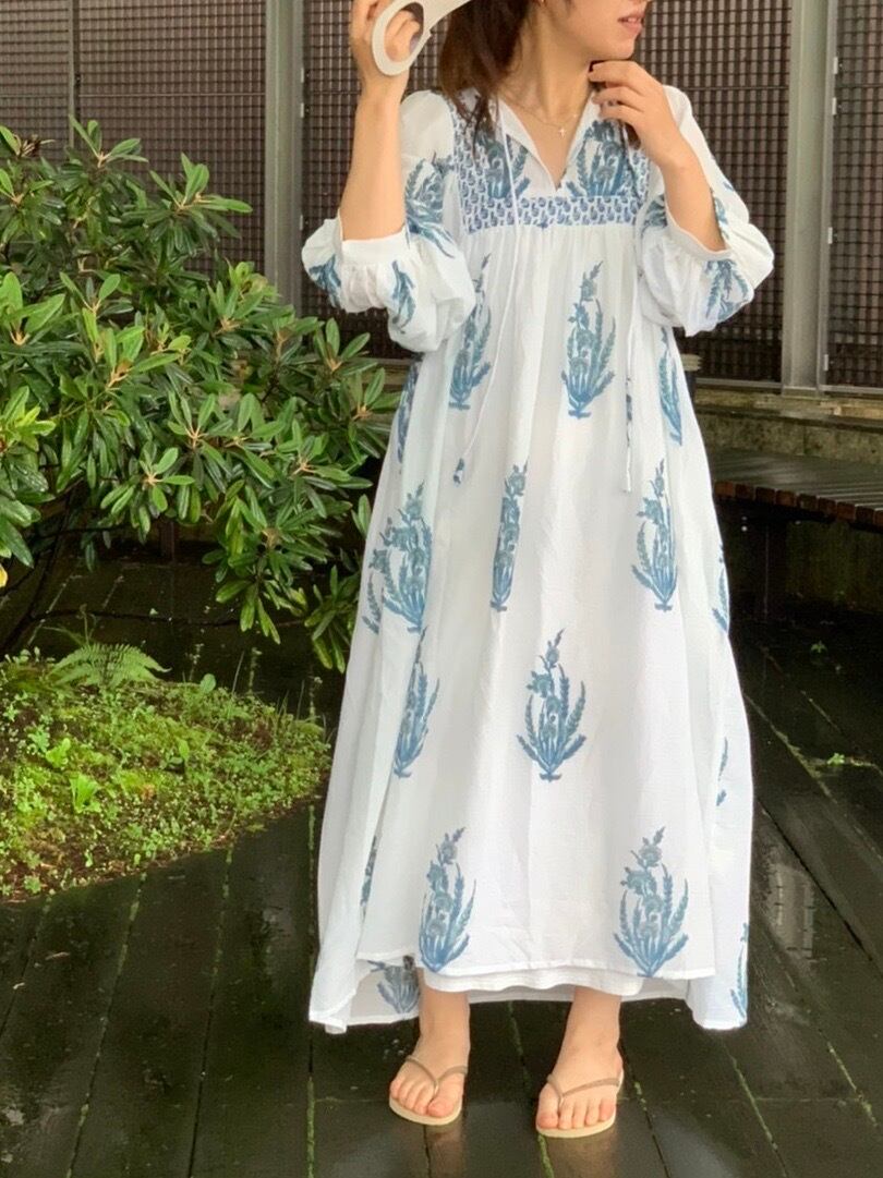 ホワイトとブルーが爽やかなワンピース。